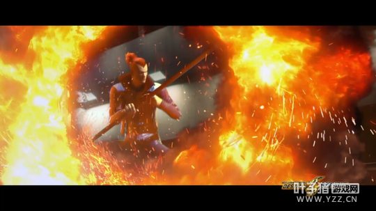 图6 在视频中,主角人物的每一招每一式都来源于游戏中,视频结尾,比利使用的招式正是游戏里的“超火炎旋风棍”,而特瑞使用的招式是“能量喷泉”,两个经典招式途中碰撞产生了大爆炸,无论是观赏度还是特效都是无可挑剔,让拳皇粉丝大呼过瘾。