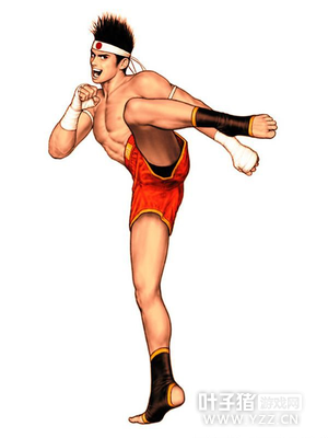 图3 东丈,特瑞和安迪的好友,最早也出现在《饿狼传说》,最后在《拳皇》中与特瑞和安迪一起组成了饿狼传说队伍,擅长泰拳,他们一起携手挑战其他参赛选手。