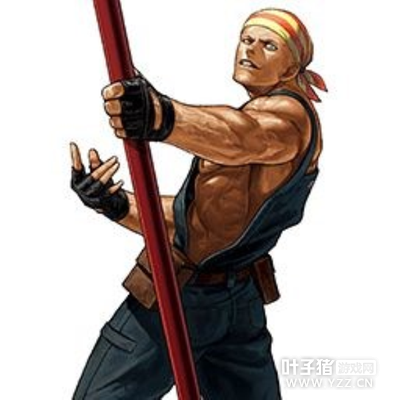 图4 比利·凯恩,最早也是《饿狼传说》中登场,主要擅长棍术,是南镇霸王吉斯·霍华德手下的亲卫队长兼得力干将,他把老板吉斯当做父亲一般敬重。