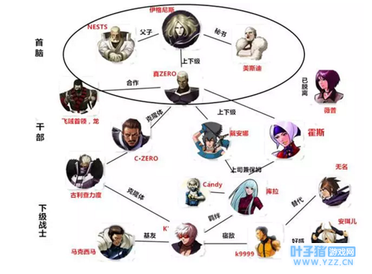 音巢(NEST•SOUND)”引发KOF99~KOF2001一系列风波的神秘科技组织。 音巢十分擅长生命体实验,组织的历史已经无从考证了,《KOF2001》之前,该组织已知的社长是NEST先生,而《KOF2001》中,人们才得知原来组织真正的首领是NEST先生的儿子,自称‘生命造物主’的 伊格尼兹(一个妮子) (IGNIZ)!IGNIZ的野心非常巨大,他妄图使自己变成‘神’统治世界。于是在1999年,“草薙复制计划”出笼,2000年,在清除了‘叛逆者’克隆ZERO之后,IGNIZ又妄图在击败最强的人类,KOF冠军后成为神。最终却发生了组织内讧,自己也在败于自己的创造物K'之手,随后殒命太空,NEST·S也走向了灭亡。