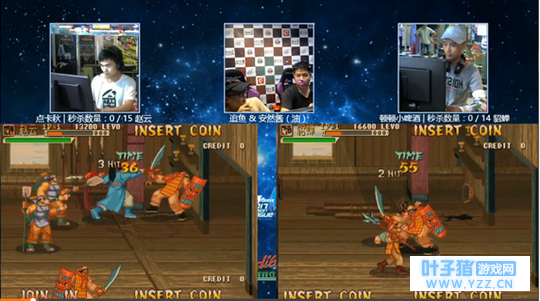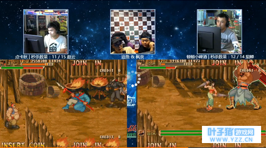 此图是全部U4联赛所有比赛的最后一场比赛.三国战纪的冠亚军总决赛.右面啤酒作为守擂方和左面赵云高玩PK争夺冠军。点卡秋这个玩家名字相信很多玩家也不陌生了吧.两个人基本上差不多的时间一起进入的三国战纪这款游戏区域.也是全国第二位赵云角色打出的赵云单人秒杀15个BOSS 由此可见点卡秋的实力绝非是等闲之辈,游戏口头禅则是:点卡到位 包教包会【厉害了】 比赛刚开始进行第一关双方玩家孙姬都选用了正常最稳的方案 点卡秋选择赵云两个气带必杀.则啤酒选择正常国民连段没有选择撞傀儡娃娃。