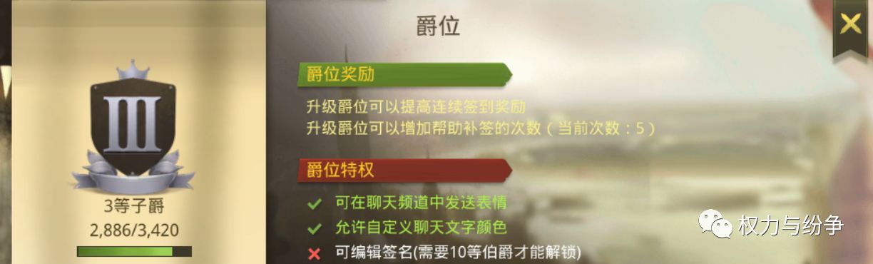 完成国王任务,品味爵士人生!爵位系统也是《权力与纷争》的一大玩法特色,极具趣味和养成性。作为玩家的身份标识, 爵位只能通过完成国王任务来进行升级, 不同的爵位也将为玩家带来不同的特权!