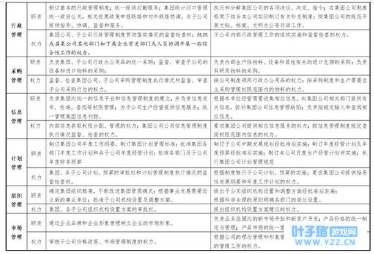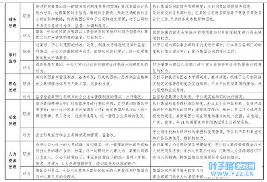 集团公司与子公司职责及权力的管理边界界定矩阵