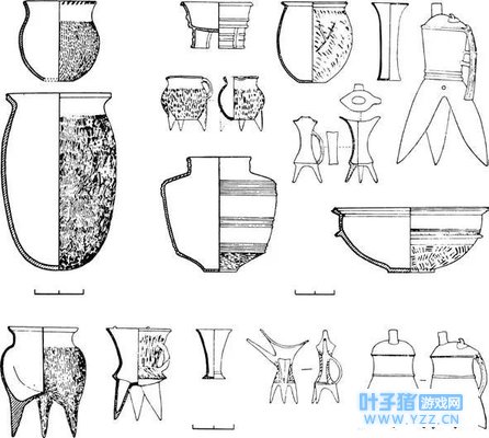 二里头出土的陶器器型 如果二里头类型文化便是夏文化,它的来源如何?不论从陶器的特征来看,还是从社会发展的程度来看,说河南龙山文化是二里头类型文化的前身的说法是合理的。河南龙山文化的材料还不充分,但已有的材料已经显示了向夏代这一类父权国家发展的强烈迹象。在好几个遗址里出土的陶祖是男性祖先崇拜的很好的证据;骨卜的流行也对当时的宗教信仰和政教性质有相当的启示。轮制陶器的出现指明手工业的分工。1957年秋北京大学考古专业的邯郸考古发掘队在涧沟村的龙山文化遗址中发现有房基一处和水井二口。“在房基内发现人头骨四具,有砍伤痕与剥皮痕,显系砍死后又经剥皮的。”“水井被废弃后而埋有五层人骨架,其中也有男有女,有老有少,或者身首分离,或作挣扎状。由此推测,死者可能有被杀死,或被活埋的。”这种情形很可能是村落之间或部落之间战争的遗迹,也指明河南龙山文化的社会已经达到了内部分化外用甲兵的阶段,为进一步的二里头类型的夏代文明奠定了基础。后冈龙山文化遗址周围的夯土城墙也在这方面具有一定的意义。 虽然河南龙山文化向二里头类型文化发展是一个合理的假设,二里头类型文化中若干重要的新文化特征的来源还有待进一步的研究;这中间最要紧的自然是青铜器。二里头遗址第三期文化中迄今已出土了青铜的礼器三件;它们的制造虽然相当原始,而且朴实无文,却不像是青铜器甫始发明的最早阶段。这个问题的进一步的了解,还靠二里头类型文化早期和河南龙山文化遗址中青铜器的进一步发现。二里头遗址三期文化开始大量出现的陶文的早期历史,与其在中国文字发展史上的地位,也是需要进一步研究的问题。如果二里头遗址的宫殿基址与夏末的桀都有关,那么夏代诸王的其他都城,将来在二里头类型文化分布地域之内其他地点是会有新的发现的。夏代的考古目前还只是开了个头。