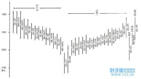 二里头文化的碳十四数据 另外, 1976年我在注意到商起源于东方的传说的同时,也注意到在考古学上商与东部沿海地区的新石器时代文化有许多相似的特点。与此同时,带有夯土城墙的王城岗遗址于 1977年被发掘,那种认为它是传说中的阳城(禹王的都城之一)的观点得到了学术界的认真对待。1977年 11月,在该地举行了一次专题讨论会,以讨论王城岗遗址与夏文明的全部关系问题, 110位考古学家出席了会议。该问题对于中国考古学的重要性通过中国考古学会的第四次年会而得以显示。这次年会在与王城岗相邻的郑州举行,会议的整个内容,都围绕着中国青铜时代以及对夏、商文明的探索问题。在上述会议上,与会者们观点分歧,一些人认为二里头文化是夏族的文化,二里头遗址从早至晚的四层遗存皆为夏朝遗存,而另一些人则主张,仅第一、二期为夏朝遗存,第三、四期则属于商朝遗存。在持后一种观点的学者们中间,有一些人欲将夏朝推至于龙山文化之中。就二里头遗址而言,直到最终的报告发表后我们方能予以定论。在初步公布的资料及所进行的讨论中,存在着无法调和的观点分歧,这主要应归咎于已公布的关于该遗址的不完备的资料中那些粗略的描述。例如:一些报告强调第二期和第三期之间的间断性,由此争辩说造成这种文化差异的主要原因是商对夏的征服,而其他报告则大谈第二、三期之间在文化上的连续性及渐变过程。近来在偃师所发现的一座带有城墙的商城被认为是传说中西亳的更合理的所在地,这可能会减少那种持二里头遗址是商代早期都城的观点者的论据。而就二里头文化而言,其地域分布范围与传说中夏朝都城之地望的巧合不可能纯属偶然。只有等到那种能将二里头文化鉴别为文献上所载的某个朝代或民族的文字被发现之时,二里头文化与夏朝的关系问题才能迎刃而解。不过本书作者敢断定:二里头文化为夏文化,而不是商朝早期文化。