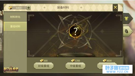 过量的装备材料经过上述的分解操作变为材料碎片后,玩家可以通过材料重组将碎片重新组装,获得欠缺的装备材料。材料重组分为初级重组、中级重组和高级重组三种,分别对应一阶、二阶、三阶套装的锻造及升品材料,不同的重组方式获取的材料种类和消耗的碎片数量也不同。玩家可以根据自己的需求,选择对应的方式,以便获取自己想要的材料。