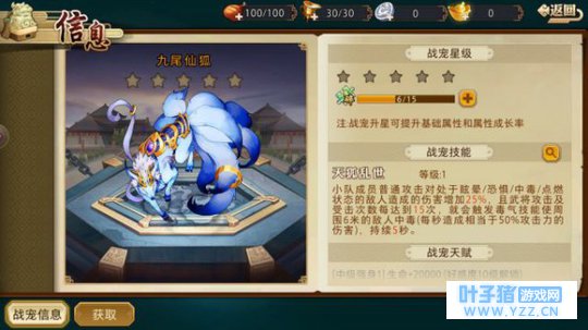 生命值在50%以上时,每12秒会 自动释放闪电打击身边大范围内的随机敌人 ,这里注意是单体伤害,造成450%无视防御伤害,虽然伤害很高,但12秒的CD和随机的单体,实在不是什么好的技能,不推荐兑换。如果特别喜欢外型,携带了,那 推荐后排携带 ,还能有一些用处吧。 九尾仙狐
