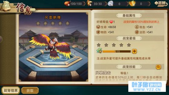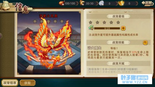 小队成员普通攻击处于各种状态下的敌方, 伤害增加25% ,而且武将攻击15次,会在6米范围内释放中毒,持续5秒,50%的伤害。总体来说比风雷鹏雕好,而且现在的跨服也是有一些骚套路的,比如 控制流,减防流 等等,控制流用着还不错。不过这个貌似要双前排的阵容带好一些, 用在输出前排身上效果最佳 。 这里说下如果凑图鉴属性,尽量选择 五色神牛和六耳猕猴 ,因为这两个不管 自身技能还是属性 都是最佳选择。 最后简单介绍下活动中推出的 红色战宠 , 涅槃火凤凰 。不管外型还是技能,都炫到爆炸,而且天赋也非常好。