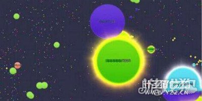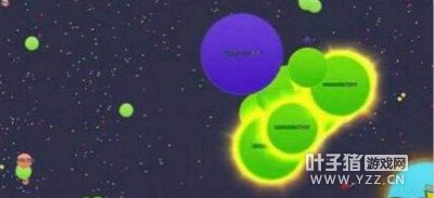 然后大球沿着队友旁边分身,方向成一个切线,这里大球变成了大量的体积略小于紫球的分身。 [编辑:叶子猪小秘书]