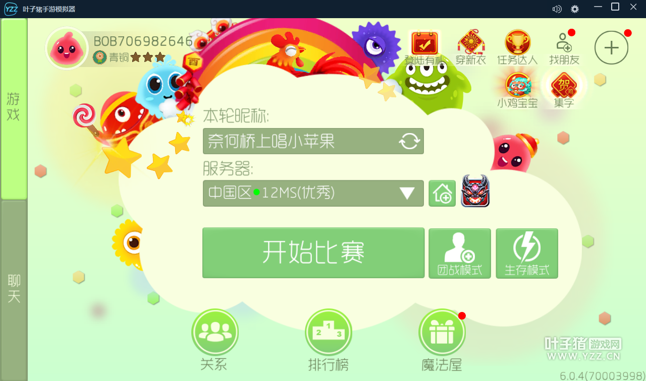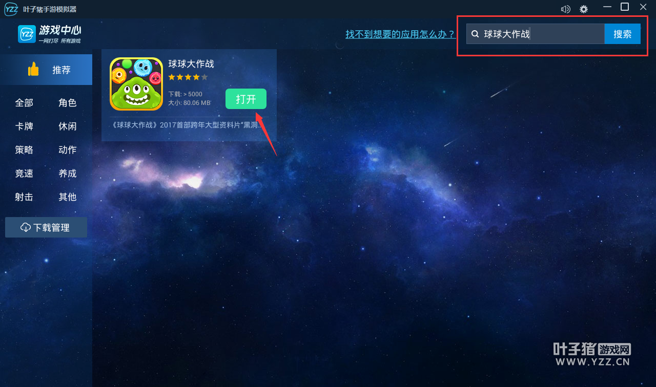 球球大作战一款极具乐趣、休闲的手机游戏,最近火遍全国,有人就觉得自己手机屏幕太小玩起来不爽,在电脑上玩才有乐趣,还可以趁老板不在的时候偷偷玩。那么怎样才能在电脑上玩球球大作战呢?怎么样在电脑上安装手机模拟器呢? 1、下载安装手游模拟器【点击下载】安全,无广告,无插件,然后打开模拟器,打开【游戏中心】。 2、进入游戏中心,在右上角输入“球球大作战”搜索,然后点击【安装】,安装完成后点击【打开】即可进入游戏。