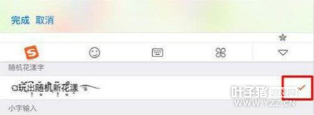 1、随机花漾字 就是说我们随便打名字,然后系统会根据你打的字,把你的字变成花漾字,由于手机型号的问题,有些字的符号可能就显示不出哦; 2、小字输入 就是你打的字里面,随机会把一些字变小,这样看起来字体的大小就会不一样; 3、组合花漾字 花漾字里面有很多其他的符号,不一定只是花漾字哦。 然后,我们选择自己想要的效果,这里需要注意的是,你选择好效果之后,那个效果的后面就会出现一个“√”,这就表示你的效果已经确定啦,之后你再返回输入界面,随便打字,你的名字上就会出现不同的小符号哦,如下图: