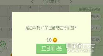 新增的签到功能,每天签到都可以领丰厚的奖励哦,首先,补签功能是没有次数限制的,所以说只要你有足够的金蘑菇就可以补签;每次补签呢,需要消耗10个金蘑菇来进行签到,奖励还是会发放给大家的哦。补签功能确实是很划算,奖励也特别的多,而且不需要消耗棒棒糖,真的是非常棒呢。 [编辑:叶子猪小秘书]