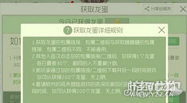 1、获得龙蛋的专属链接,专属二维码与获取棒棒糖的专属链接、专属二维码不同,不同通用; 2、其他人每次点击你的专属链接/二维码,你获得1个龙蛋,每日最多30个,相同的人不重复计算; 新玩家通过你的专属链接/二维码并玩一段时间游戏,你可以获得200个龙蛋,无上限; 4、邀请较长时间未登录游戏的资深玩家回归游戏,并玩一段时间,你可以获得200个龙蛋,无上限; [编辑:叶子猪小秘书]