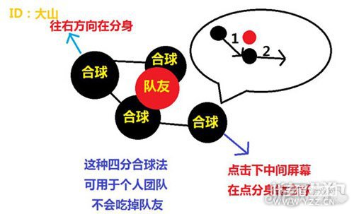 球球大作战团战配合队友合球
