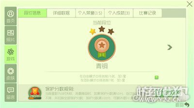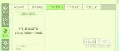个人荣誉:之前的个人荣誉是以段位的标志来命名的,现在从5月1日开始,将进行新的统计,其中包含综合评分、胜率以及MVP数;