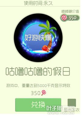 球球大作战咕噜咕噜的假日光环获取方法,想度假的日子里配上这样的光环感觉好应景啊,而且350的棒棒糖买一个光环确实还可以了,就看你喜不喜欢这款皮肤了。 限时出售,价值350个棒棒糖,可在魔法屋直接购买,获得后即可使用。