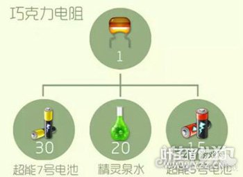 球球大作战巧克力电阻合成公式介绍,在游戏里面的材料还是需要去了解的,只有知道了才知道如何合成自己想要的东西,下面跟小编来看球球大作战巧克力电阻合成公式介绍。 获得方法: 1、通过超能7号电池(30个)、超能5号电池(15个)和精灵泉水(20个),以此合成巧克力电阻。 作用: 巧克力电阻是壮志凌云(3级与5级)、魅影幻姬(3级)、绝地武士(2级)以及先祖之力(4级)等圣衣的合成材料之一。