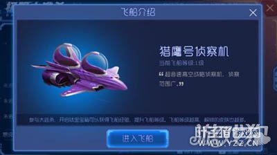 飞船升级的作用: 飞船升级以后,我们进入飞船中心,可以看到光环、圣衣、孢子、残影、关键词等按钮,这里面都是钛金箱子可以开出的皮肤。