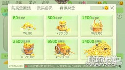 3、在金蘑菇内购界面,点击想要购买的数量,每种数量都标出了价格,大家根据自己需求购买就行。