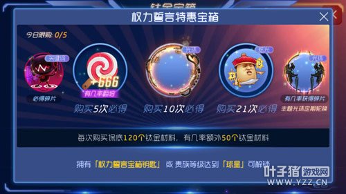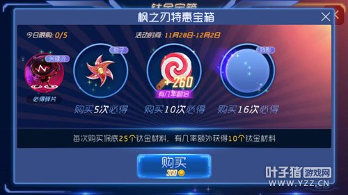 本次钛金宝箱开放天网七号、枫之刃和权力誓言三种,均为限时开放!