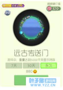 远古传送门光环外形像一个石头做的大门,再加上动画旋转看上去就像一个传送门!该光环可以让球宝的show值增加116点!