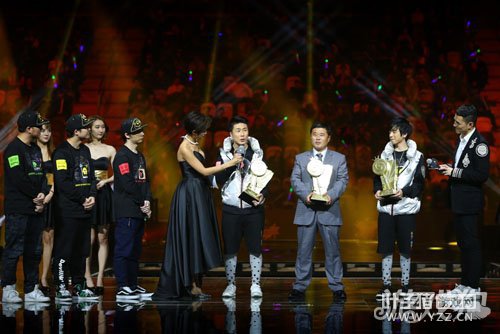 《球球大作战》项目负责人崔大龙先生与表演嘉宾潘玮柏为人气战队颁奖