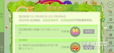 球球大作战游戏达人活动降临,挑战领榛果,完成挑战可领榛果奖励。那这个活动怎么参与呢?参与有什么奖励?下面一起来看看吧。 游戏达人 活动时间:2017年3月2日~2017年3月4日 活动内容:活动期间,达成任务条件,完成挑战即可领榛果奖励。 活动详情: 参与3局游戏(自由或者团战),可得波吉遗落的礼盒(小);