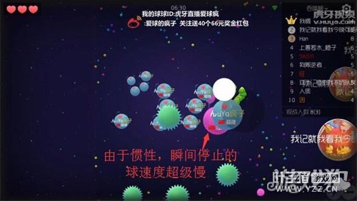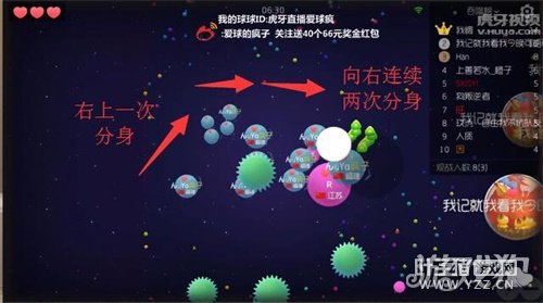 右上方一次分身避开刺,向右连续两次分身吃到孢子胀大,吃掉慢吞吞的对方。 疯子的技术如果用文字来表现,只有简单的几句话而已,如果自己在练习中,会发现一些小的误差。例如连续两次向右分身,最终胀大后不能偷掉对方,让对方轻而易举的跑掉,如果细心观察的球宝会发现,疯子的球是自上而下的分身,对方是向着右上方走,迎着疯子走进去,瞬间停下来速度骤减,再向左侧移动时却逃不掉疯子的追杀。 看似很简单的一次偷球,但是却包含了许多小技巧,掌握分身的距离与移动速度是每个玩家一直需要学习的内容,希望大家在学习之余快乐的上分! [编辑:叶子猪小秘书]