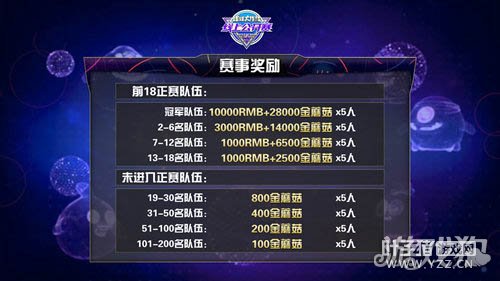 本次参赛队伍全部来自线上公开赛预选赛积分排名前18的队伍,采取BO5(五局三胜)双败赛制,共6个比赛日。由小组赛、淘汰赛、月赛决赛组成。