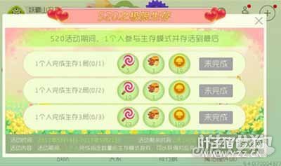 活动时间:2017年5月19日~2017年5月21日 活动内容:活动期间,一个人完成指定数量的生存模式游戏,可以获得对应奖励。 520活动期间,一个人参与生存模式并存活到最后。 1个人完成生存1局,获得5个棒棒糖,1份神秘美食,10个金蘑菇; 1个人完成生存2局,获得10个棒棒糖,1份神秘美食,50个金蘑菇; 1个人完成生存3局,获得20个棒棒糖,2份神秘美食,100个金蘑菇; [编辑:叶子猪小秘书]