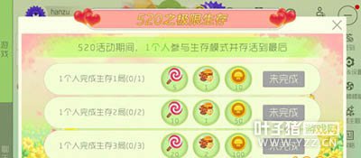 2、极限生存 这次变成一个人了,一个人打生存模式,必须坚持到最后。成功完成1、2、3局可以分别获得三档奖励,有棒棒糖和金蘑菇,还有食材。