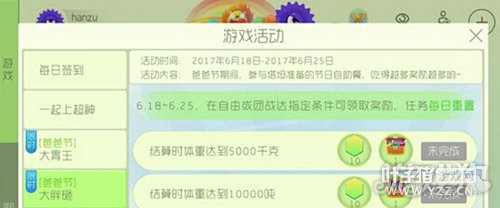 2、大胖砸(活动时间2017年6月18日-6月25日) 活动期间,在自由模式或者团战模式,结算时(打完一局)体重达到对应重量,即可兑换奖励,任务每日重置,每天都可以来参加。