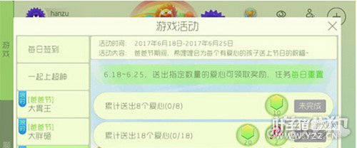 3、爱心使者(活动时间2017年6月18日-6月25日) 活动期间,送出指定数量的爱心,即可获得对应奖励,可送给对象不限,同一人数可重复送出,计算在内。