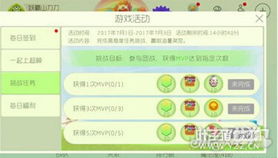 挑战目标:参与团战,获得MVP达指定次数 获得1次MVP,获得20个彩豆,1个圣衣材料箱,10个龙蛋; 获得3次MVP,获得20个彩豆,1个圣衣材料箱,10个金蘑菇; 获得5次MVP,获得30个彩豆,2个圣衣材料箱,4天限时残影火龙焰 [编辑:叶子猪小秘书]