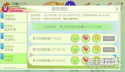 球球大作战限时赢取海量糖果炮弹等奖励任务,大逃杀任务的具体要求是什么呢,会得到什么样的奖励呢,跟小编来看看活动的具体介绍。 累计获得勋章5个,可得彩豆*30,糖果炮弹*5,两周年盛典活动集字*5; 累计获得勋章10个,可得彩豆*30,糖果炮弹*5,两周年盛典活动集字*10; 累计获得勋章20个,可得彩豆*50,糖果炮弹*5,两周年盛典活动集字*15;