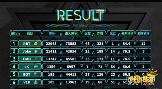 小组赛A组BO5第三局 第三局开始JOK战队终于展现出了双冠王的强者实力,四处出击吃球,在比赛还有4分钟的时候占据体积第一名的位置。但是EOT在结束前吃掉JOK逆转比赛赢得胜利!本局MVP:HU8