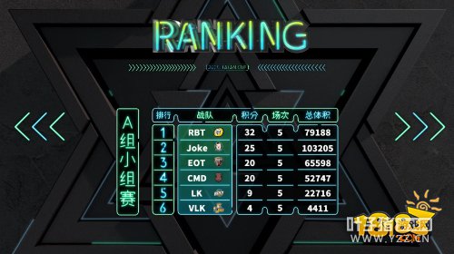 最终,小组赛A组RBT、JOK和EOT这三支战队晋级明天的胜者组第一轮比赛,而CMD,LK和VLK这三支战队将继续征战今晚败者组第一轮比赛,以获得明天败者组第二轮的机会。加油吧!
