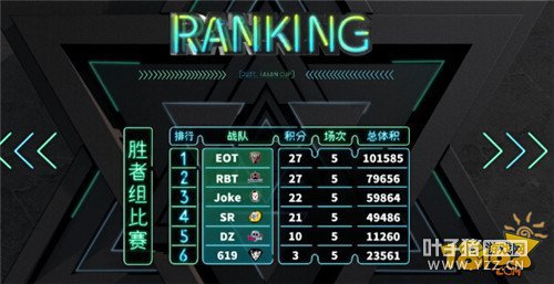 最终,胜者组的EOT和RBT这两支战队直接晋级冠军赛,其余四支战队将与昨天败者组出线的FT和AY战队争夺进入冠军赛的四个名额,期待他们给我们带来精彩表现吧。