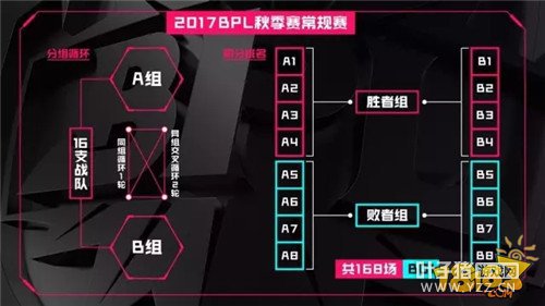 常规赛·9月7日-10月6日 常规赛将采用分组赛制,16支战队将分为A、B两组进行一轮“同组循环”和两轮“异组交叉循环”共计168场比赛。与以往的“全部战队积分排名”不同,此次秋季赛将根据组内积分排名划分“胜败者组”,每组前四名进入胜者组,后四名进入败者组。这势必会加剧组内竞争,让比赛更加激烈。