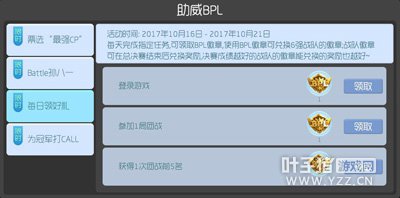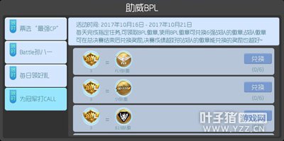【团战我最大 登陆领好礼】 10月16日至10月21日期间,登陆游戏参加团战,即可获得“BPL徽章”。在一次对局中进入前5名的球宝还可以额外获得一枚BPL徽章。电竞之魂熊熊燃烧,谁是波拉哩星最风骚的战士,团战见真章!