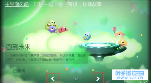 主界面风格:回到未来 主界面风格随心所欲切换大指南来啦! 点开+号——点击球球主题——点击左右箭头切换界面风格,选择喜欢的界面风格“使用界面”就ok啦!回到未来和彩虹星云随心所欲切换哟!
