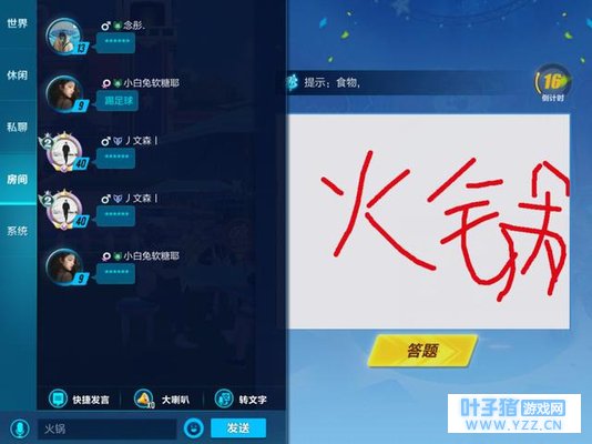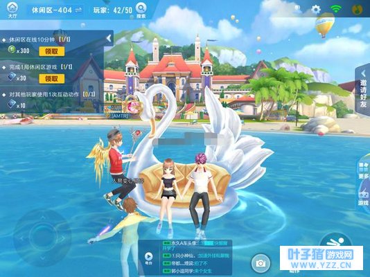 你还可以坐在湖水中央的天鹅上,与心仪的妹子静静的欣赏美景,畅聊过去现在未来。 当然休闲区可不仅仅是风景优美那么简单。还有很多趣味的小游戏让你玩,点击游戏界面的右下角你即可进入小游戏,第一种是你画我猜,第二种是答题大赛。游戏简单易懂,让你放下赛车比赛时紧张的气氛。