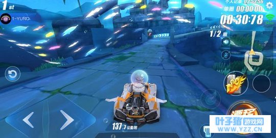 飞车手游的操作也非常简单,很快就可以上手,左手负责控制屏幕左侧的左右键控制方向,右手则是负责操作漂移以及小喷和发射氮气等操作,如果车手的技巧磨练的足够好,超越对手只在一个近道的距离!