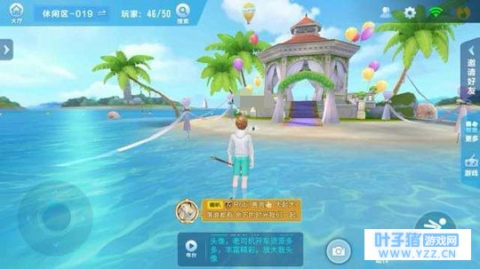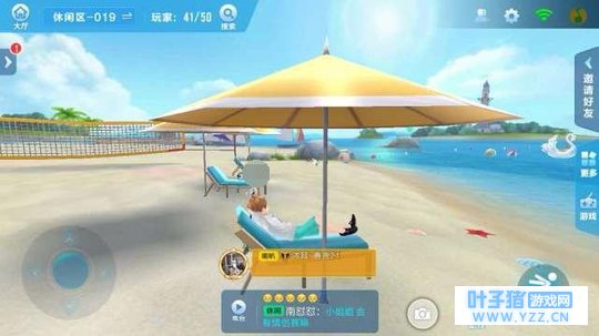 4.游戏:休闲区的地方就好比你是在海边沙滩一样,除了上面的几种之外,还有小游戏可以提供给玩家们娱乐的时间,其中的你画我猜,你可以在海边跟路人玩家一起玩起你画我猜的小游戏,看看你的画画以及识别强不强。