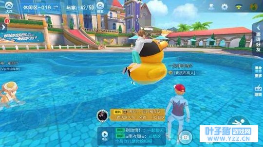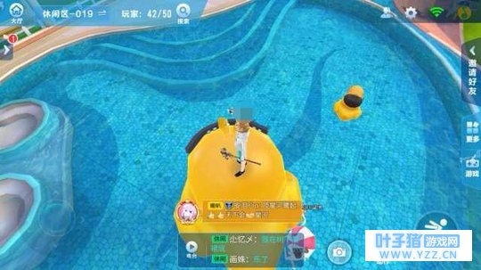 5.趣事:除了电台,游戏,互动,动作之外,最有趣的还是休闲区里面的设施,就好比是泳池里面的小鸭子,你可以双击屏幕,这样你就可以跳上小鸭子身上。