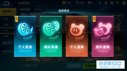 这个模式下里面包含了四种模式,分别为个人竞速、组队竞速、个人道具与组队道具。这几种模式出来后让资谈君不能自拔的便是个人竞速了,资谈君只想每一次都能够完成或者是拿第一名,因为靠别人赢得的比赛始终不是自己的,所以个人觉得还是喜欢个人玩法比较多。 赛道之王