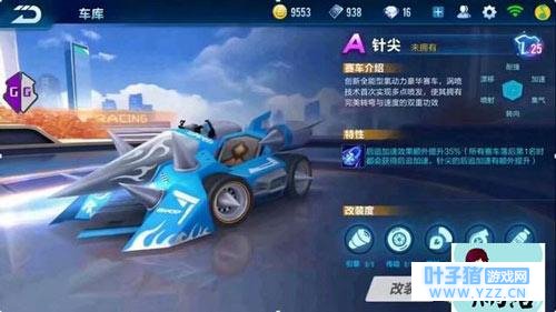 A级车-针尖: 针尖,外观像犀牛,它应该是手残党的福音车,落后在倒数第一的话,可以额外获得后追加速35%,不过一旦不是倒数第一就没有了,有点鸡肋的能力!
