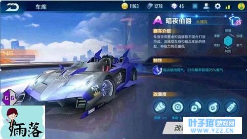A级车-暗夜伯爵: 使用氮气后,有23%的概率蝴蝶25%的氮气。暗夜伯爵的加成属性有点厉害...使用氮气还能获得集气,估计竞速赛里会是一个bug般的存在!