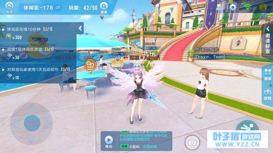 新颖的社交模式 除了赛车以外,《QQ飞车手游》还有不同的玩法,休闲区玩法也是多种多样。你可以在里面跟沙滩椅、秋千、天鹅互动!和好友相互膜拜,干杯。 而休闲区内置的你画我猜,答题游戏让游戏交友更为简单!