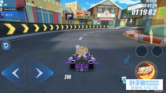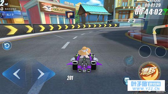 第一个弯道没什么难度,过起来比较简单,一个甩尾漂移就可以直接过去了。但要注意的是,这个弯道在开局的时候容易发生拥堵导致的碰撞,所以老司机们肯能会选择不漂移来避免被后其他车撞到方向失控,如果起步就获得一定距离的领先可以去漂移集气一波,当然也有操作比较犀利的故意落后在这边利用双喷直接超越前方的车。